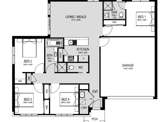 Specification:  4 Bedrooms, 2 Bath, 2 Car